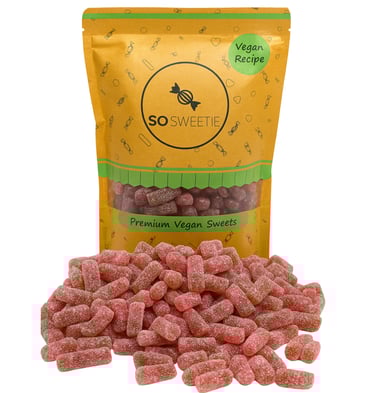 Sweet and sour cherries coated in fizzy sugar crystals. A vegan-friendly favourite that balances fruity flavour with tangy zing.