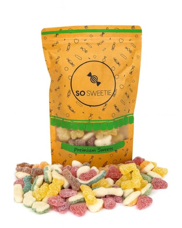 A tangy blend of sugar-dusted sour gummies with bold, mouth-watering flavour in every bite. Perfect for those who love a sweet–sour kick, this mix delivers fruity fizz, chewy texture, and colourful fun all in one pouch.