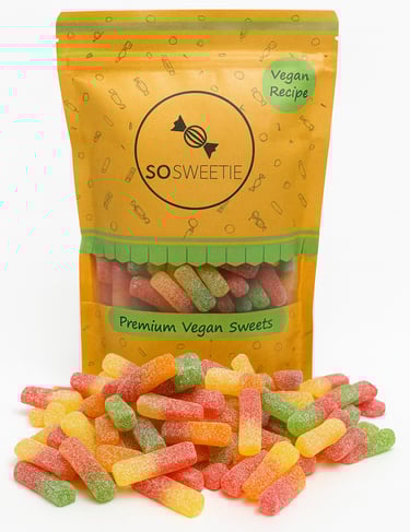 A colourful medley of fizzy and gummy vegan sweets, crafted for candy lovers who want flavour without compromise. Perfect for sharing, gifting, or treating yourself—every bite is gelatine-free, dairy-free, and deliciously fun.